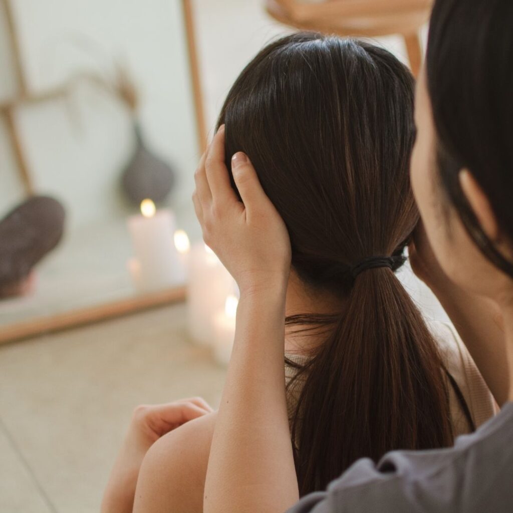 ❸顔・頭のツボを用いたセルフケアの指導ができます