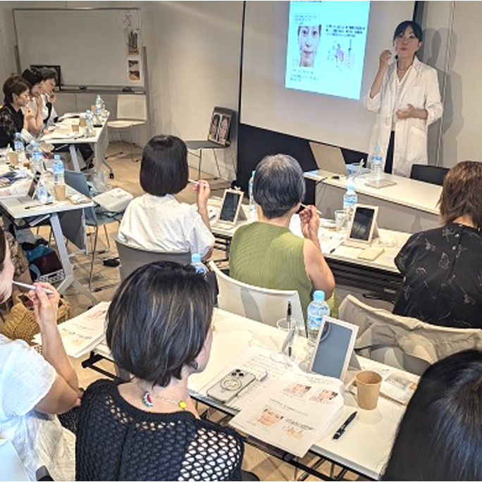 フェイシャルヘルスケア認定士養成講座では、資格を取ってしばらく時間がたってから「改めて復習したい」というご希望にこたえるために、定期的な練習会(参加費終日で¥5000)と監修者による個別チェック&レッスンの仕組みを設けています。
