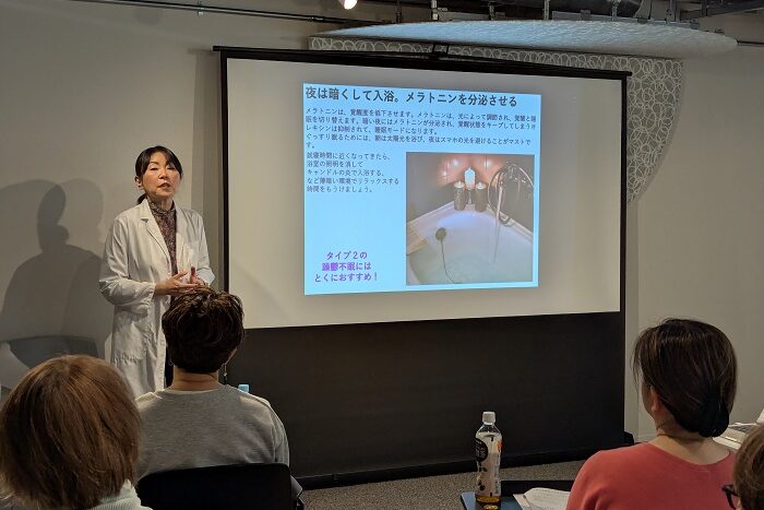 当日は一人ひとり、測定器を使って自律神経の状態を確認。その客観的なデータに基づき、心身をリラックスさせる「百会(ひゃくえ)」を中心に、頭部全体を緩めるワークを行いました。脳科学と中医学を融合させたアプローチにより、参加者の皆様がみるみるリラックスされていく様子が印象的でした。