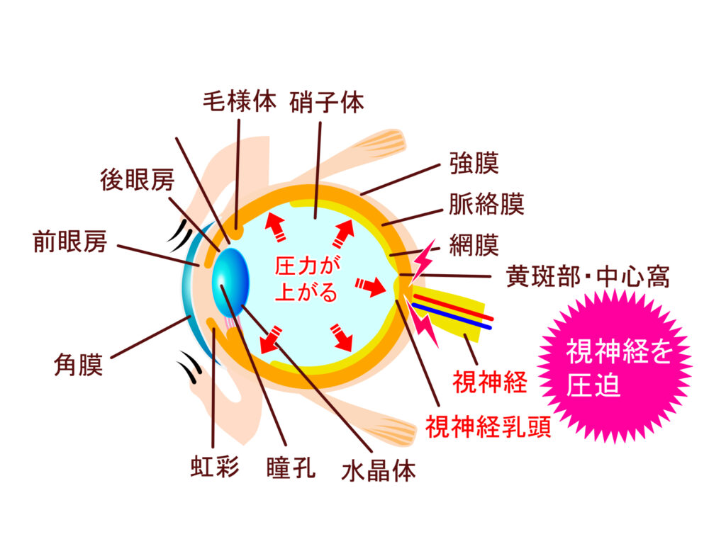 緑内障の最大の原因は「眼圧の上昇」。目の中には「房水(ぼうすい)」という液体が流れており、この液体の「作る量」と「出す量」のバランスで眼圧が決まります。このバランスをコントロールしているのが自律神経です。